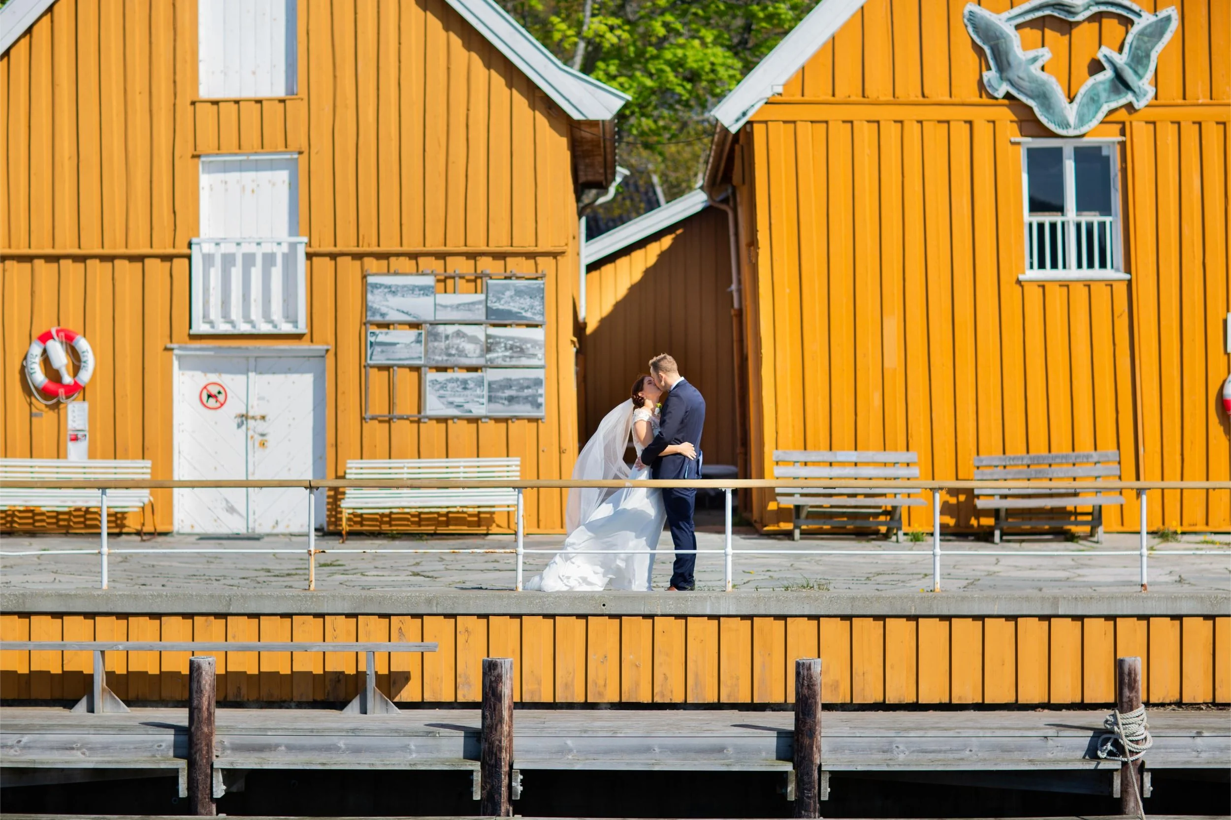 De gamle sjøbodene på brygga er kommunens 1000-års kulturminne, og en yndet bakgrunn for bryllupsfotografi. Det samme gjelder det historiske bryggene rett ved.